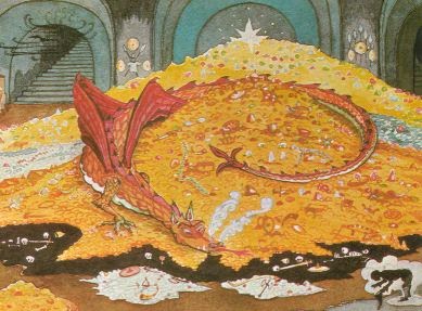 JRR Tolkein. The plucky little guy is surprised to find the ancient dragon is awake and still possessive of its treasures. I feel like there's a metaphor in here, somewhere.
